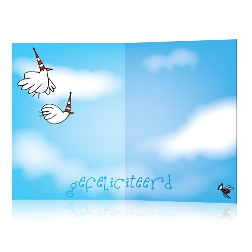 Deze dubbele kaart (13,5 x 9,5 cm) is ook aan de binnenkant bedrukt. (zie tweede afbeelding). Incl. bijpassende envelop (Ivoor wit).
